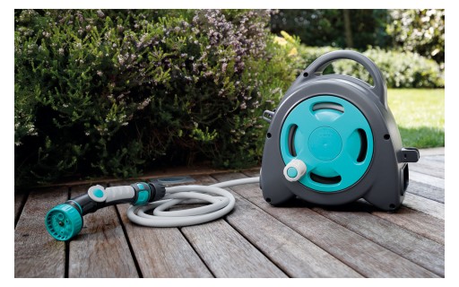 - Skrzynka z bębnowym kołowrotkiem chroniąca wąż oraz ułatwiająca przechowywanie