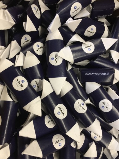 Prosimy o przesłanie materiałów i informacji (logo, teksty, wzór) potrzebnych do wykonania etykiety cukierka, na tej podstawie stworzymy dla Państwa kilka indywidualnych projektów. Po otrzymaniu akceptacji projektu przystąpimy do realizacji Państwa zamówienia.