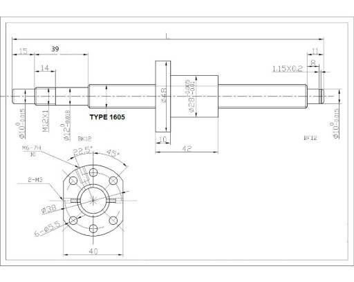 ШАРИКОВЫЙ ВИНТ 300мм 1605 + ГАЙКА + BK12/BF12 ЧПУ