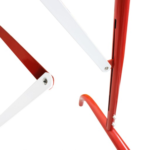 Bariery harmonijkowe składane wykonano ze stali, malowane płaskowniki połączono trwałymi nitami. Barierki techniczne posiadają blokadę, która uniemożliwia ich rozłożenie w trakcie transportu i przenoszenia.