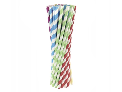 SŁOMKI PAPIEROWE kolorowe 8mm BIO ECO paski 100szt
