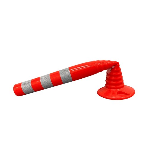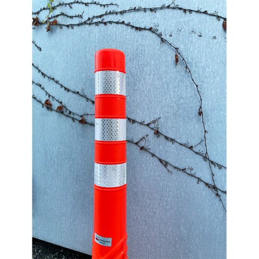 Słupek parkingowy został wyprodukowany z elastycznego i wytrzymałego materiału – słupek blokujący uchyla się podczas nacisku, nie powoduje uszkodzeń pojazdu po najechaniu. Tworzywo elastyczne sprawia, że po zgięciu wraca do swojej pierwotnej formy. Duży kąt nachylenia umożliwia harmonijkowy zwór u podstawy. Kolor słupka elastycznego wpływa na jego dobrą widoczność, produkty są łatwo dostrzegalne, nawet w nocy. Dodatkowo słupki wyposażone zostały w pasy taśmy odblaskowej.