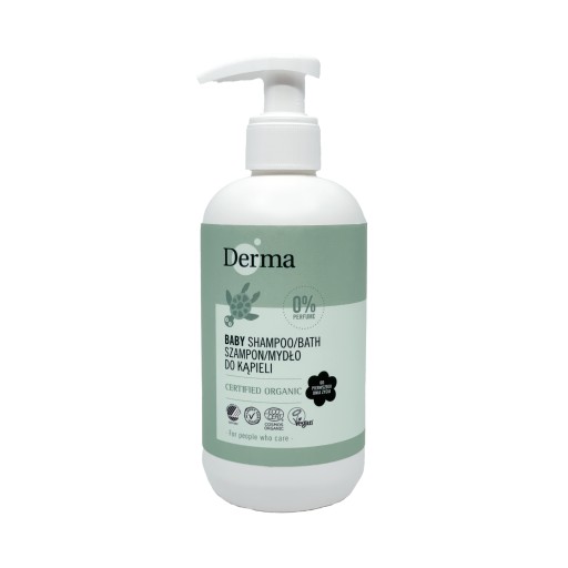 Szampon/mydło do kąpieli Derma Eco Baby to łagodny, ekologiczny i delikatnie pieniący środek myjący opracowany z myślą o delikatnej skórze ciała i głowy niemowląt oraz małych dzieci. Zapewnia on odpowiednie nawilżenie i odżywienie skóry, zapobiegając jej wysuszeniu.