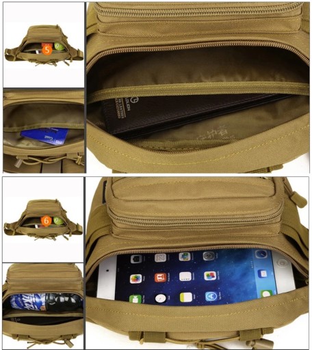 4 kieszenie zamykane na zamek błyskawiczny, w tym główna komora ma zamek dwustronny