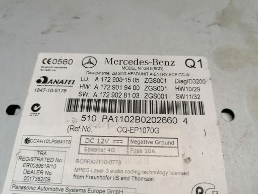 MERCEDES R172 РАДИО CD НАВИГАЦИЯ A1729001505 КОД