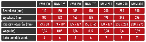 Jej zaletami są stabilne parametry przepływu, dobre właściwości mechaniczne oraz wysoka odporność na częste zmiany temperatur. Dodatkowo kratka wyposażona jest w siatkę przeciw owadom.