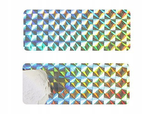 Hologramy HP-800 wykonane są na rozwarstwiającym się podkładzie papierowym. Nie nadają się do stosowania na zewnątrz. Idealne na dyplomy, certyfikaty, bilety, karty rabatowe. Ich zastosowanie uniemożliwia właściwe kserowanie takich dokumentów.