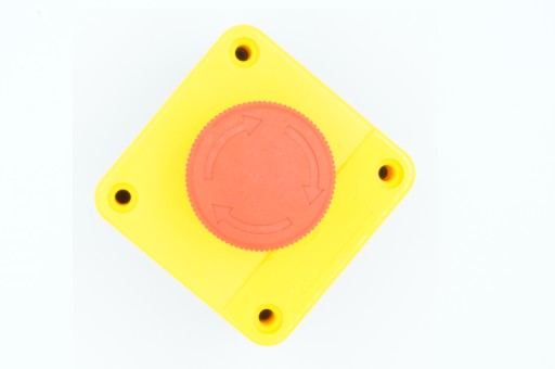 Opis działania: przycisk awaryjny załączany jest poprzez bezpośrednie wciśnięcie grzybka, odryglowywany poprzez obrót grzybka.