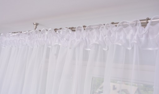 Piękna gotowa firana wykonana z wysokiej jakości białego woalu.