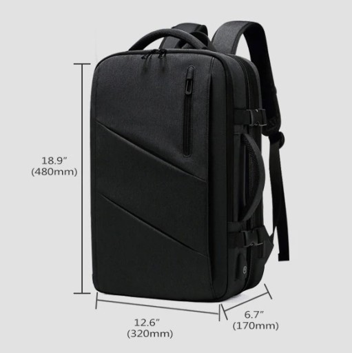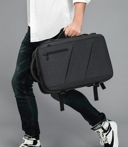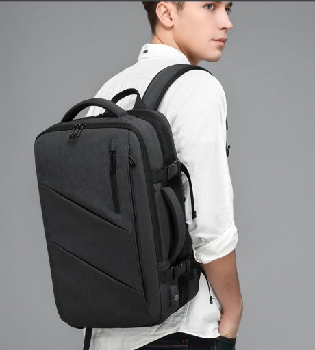 Wielofunkcyjny plecak na laptopa do rozmiaru 17,3” marki NIGEER o symbolu 1811. Bardzo dobrze uszyty i zaprojektowany plecak na laptopa o prostej bryle, dostępny w dwóch wersjach stylistycznych. Wykonany z wytrzymałego i wodoodpornego materiału - OXFORD, odpornego na zadrapania i naderwania. Pierwsza, przednia komora plecaka jest bardzo płaska, ale świetnie zorganizowana. Zmieścisz w niej wszystkie potrzebne rzeczy np. notes, powerbank, telefon, długopisy, klucze, książki, gazety czy parasolkę. Tylna, trzecia przegroda zawiera kieszeń na laptopa do rozmiaru do 17,3” oraz tablet do 10”, obie zapinane na pasek z rzepem. W drugiej, środkowej komorze znajdziesz odpowiednią ilość miejsca, aby spakować ubrania na kilkudniowy wyjazd. Komora ta jest składana, co oznacza, że można ją rozłożyć i używać tylko kiedy jest potrzebna. Wystarczy rozpiąć jeden suwak, aby powiększyć plecak o 12cm głębokości.Dodatkowo komorę tą możemy otworzyć jak walizkę, dzięki czemu mamy łatwy dostęp do jej całej zawartości. Plecak wyposażony jest w zewnętrzne gniazdo USB, dzięki czemu nie ma konieczności wyciągania power banka z plecaka, aby naładować telefon lub inne przenośne urządzenie. Od strony pleców schowana jest mała, płaska kieszonka - idealna na portfel lub telefon. Umieszczono tutaj również solidny pas, dzięki któremu można stabilnie umieścić plecak na rączce torby lotniczej. Z przodu plecaka również znajdują się dwie kieszonki na podręczne rzeczy np. na telefon. Plecak posiada solidne, wzmacniane szelki z dodatkowym zapięciem, aby równomiernie rozłożyć ciężar na ramionach i klatce piersiowej. Z boku i u góry plecaka umieszczono dwa miękkie uchwyt, dzięki którym można go przenosić w ręce - jak torbę (szelki nie są chowane). Plecak polecamy na krótkie podróże lotnicze jako bagaż podręczny, gdzie liczy się niewielki rozmiar bagażu i wygoda.
