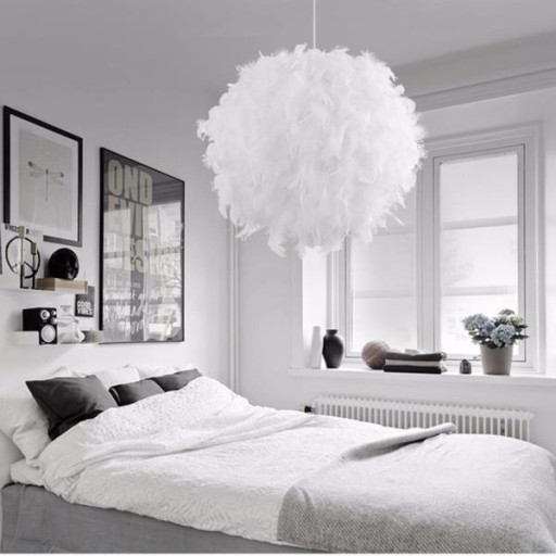 Ta atrakcyjna lampa zdobiona piórami ma stylowy biały kolor i przepiekny szykowny wyglad.
