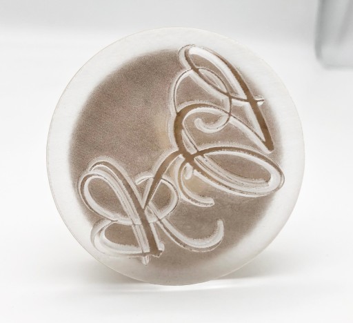 - tworzywo wygrawerowane laserowo (możliwość przyklejenia na stopkę - plastikową lub drewnianą - proszę o info w tej sprawie)