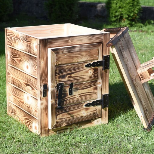 - KOMORA WĘDZARNICZA Z DASZKIEM wykonana z desek (ŚWIERK SKANDYNAWSKI) 20[mm] (+/-2mm) o wymiarach 50x50x80[cm) z dachem
