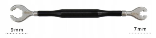 Klucz służy do centrowania oraz dociągania szprych. Wykonany jest ze stali. Ma końcówki o średnicach 9 mm i 7 mm.