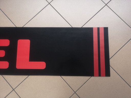 Chlapacz wykonany z CZARNEJ gumy z CZERWONYM nadrukiem KOGEL