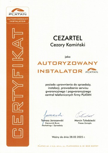 - instalujemy i konfigurujemy również zdalnie zakupiony u nas sprzęt Platan