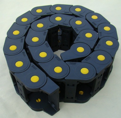 Wysokiej jakości prowadnik kabli z żółtymi zatyczkami.