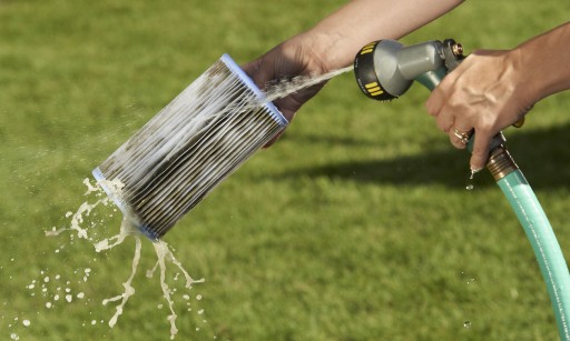 Po odkręceniu górnej pokrywy, wystarczy wyjąć uszczelkę oraz przykrywkę filtra. Następnie ostrożnie wyjąć wkład oraz oczyścić go wodą pod wysokim ciśnieniem np. przy pomocy węża ogrodowego.