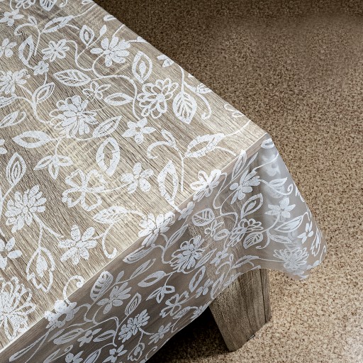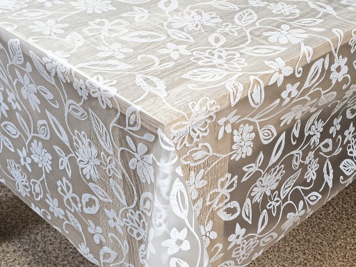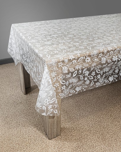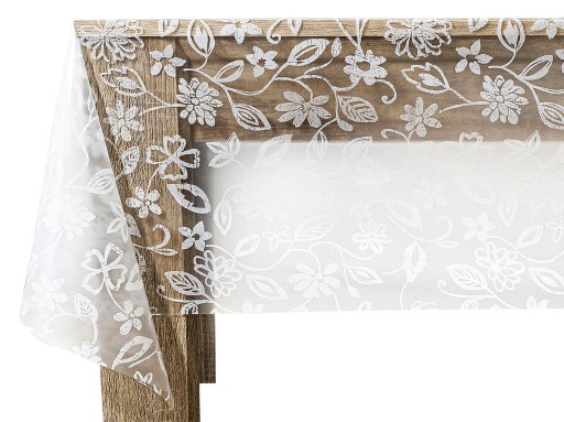 Kategoria: TREND cerata półprzeźroczysta z białym nadrukiem, moletowana (wytłaczana ozdobnymi wzorami). Pięknie zdobi stół i chroni go przed zabrudzeniami.