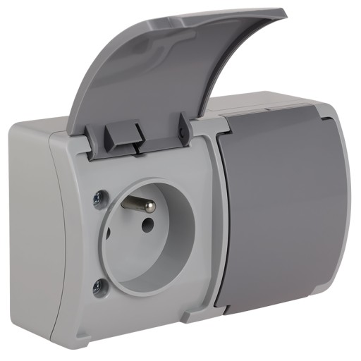 ДВОЙНАЯ ГЕРМЕТИЧНАЯ СЕРАЯ РОЗЕТКА НА ПОВЕРХНОСТИ