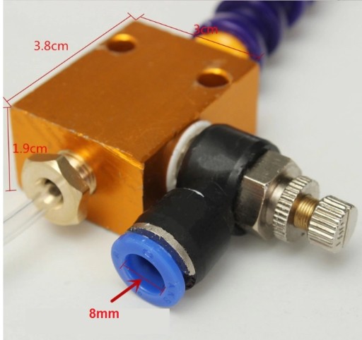 Wężyk olejowy z dyszą i pokrętłem regulacyjnym.