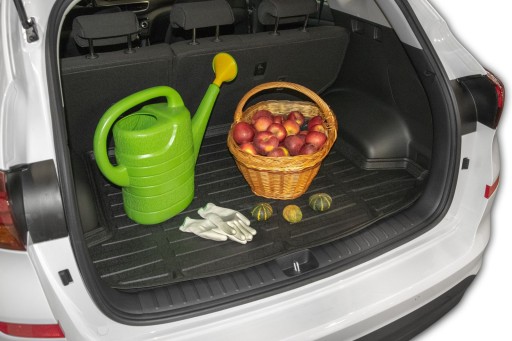 - Kształt maty w 100% odpowiada obrysowi przestrzeni bagażnika