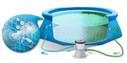 Intex wprowadza rewolucję w basenach ogrodowych - napowietrzanie wody podczas jej filtrowania, dostępna we wszystkich pompach tego producenta. Miliony bąbelków powietrza są wytwarzane przez pompę, czyniąc wodę łatwiejszą do czyszczenia i filtrowania.
