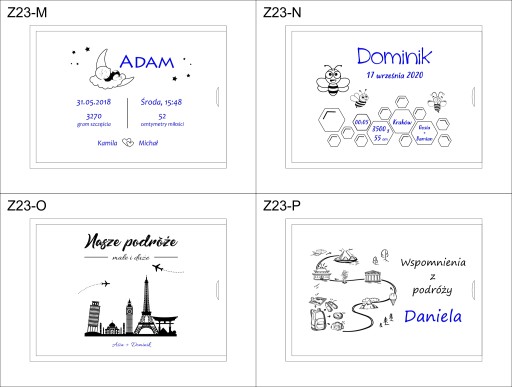 Przy finalizacji zakupu prosimy podać w wiadomości dla sprzedającego numer projektu oraz własny tekst (imiona, data, dedykacja) zaznaczony na szablonie niebieską czcionką.