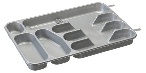 Duża taca na sztućce z 7 miejscami do przechowywania sztućców i przyborów kuchennych. Wkład dostępny w dwóch wersjach kolorystycznych.