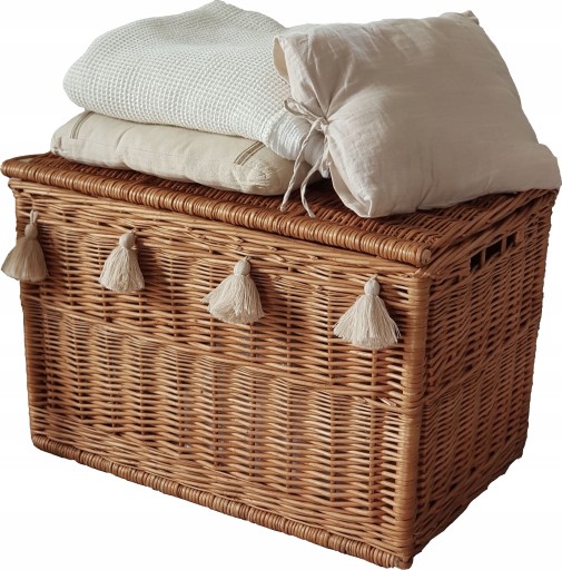 Skrzynia w całości wykonana ręcznie z najwyższej jakości wikliny, pochodzącej z polskich gospodarstw.