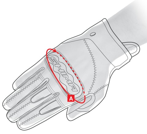 A: OBWÓD DŁONI - Zmierz obwód dłoni tak, aby lekko napięta taśma przechodziła przez kostki w ich najszerszym punkcie pomijając kciuk