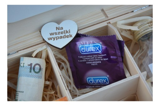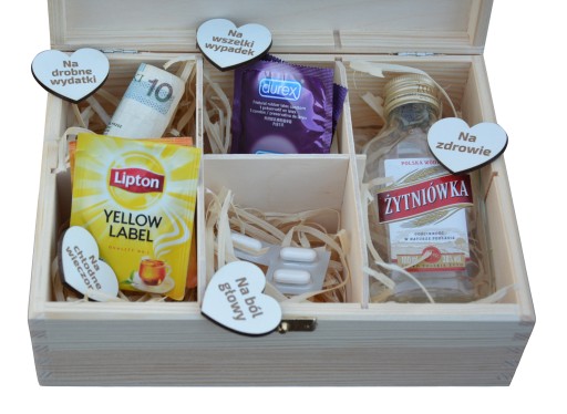 Niezbędnik małżeński - piękne pudełko z grawerem, wypełnione wełną drzewną. Zaskocz młodych małżonków i podaruj im elegancki, praktyczny prezent.