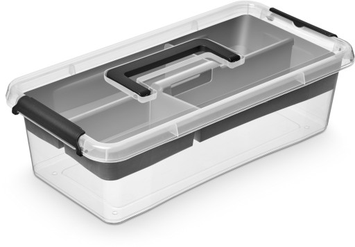 Wykonany jest z wytrzymałego przezroczystego tworzywa sztucznego co zapewni mu długą żywotność. Rączka na górze pozwala łatwe przenoszenie całości a klipsy na bokach zapobiegają otwieraniu.