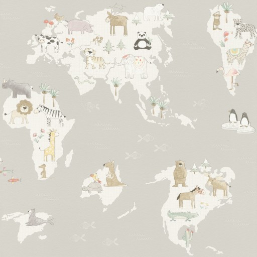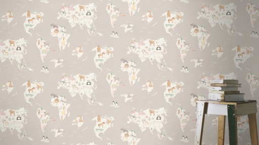 Tapety z motywem graficznym mapy z wesołymi zwierzakami podkreślą charakter dziecięcego i młodzieżowego pokoju