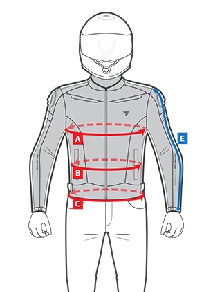 E: DŁUGOŚĆ RĘKAWA - Zmierz odcinek od kości ramienia, przez łokieć do nadgarstka