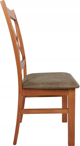 Krzesło wykonane jest zdrewna bukowego i bejcowane na wybrany kolor oraz zabezpieczone lakierem wodnym. Wypełnienie siedziska stanowi pianka o zwiększonej sprężystości.