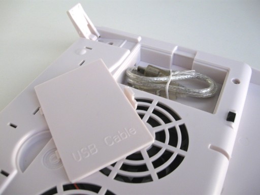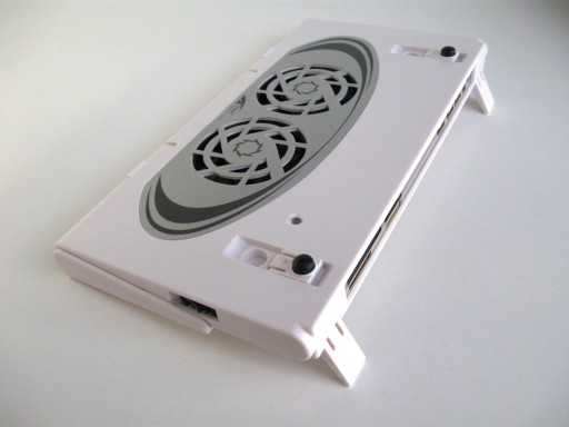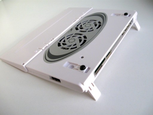 Posiada ona dwa wolnoobrotowe wentylatory które chlodzą notebooka. Wentylatory te są napędzane energią płynącą z portu USB. Nie wymaga zasilania sieciowego ani jakichkolwiek baterii.
