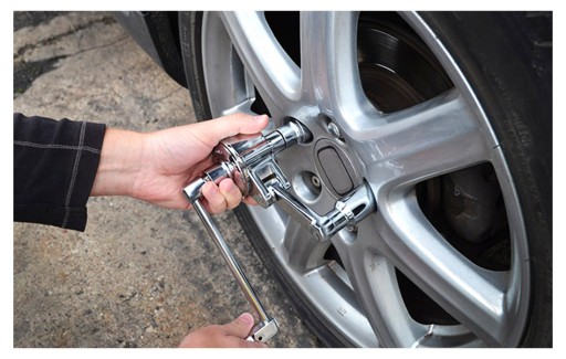 Dzięki uniwersalnej blokadzie (niezależnie od ilości szpilek), klucz stabilnie i pewnie trzyma się koła w trakcie odkręcania.