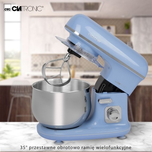 Clatronic KM 3711 to robot kuchenny który pozwoli na przygotowywanie ciast oraz deserów stanie się jeszcze łatwiejsze i przyjemniejsze. Idealne rozwiązanie nie tylko dla miłośników pieczenia. Funkcjonalny robot planetarny wysokiej klasy, który charakteryzuje nowoczesnym designem oraz przyjemnym, pastelowym kolorem obudowy.