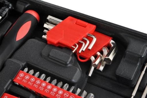 Zestaw standardowych bitów, nasadek, kluczy, śrubokrętów, itp. w praktycznej walizce przyda się w każdym domu i warsztacie, zarówno dla profesjonalisty, jak i amatora.