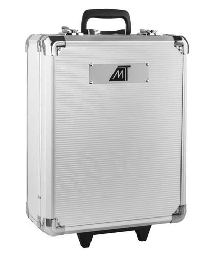 ŁATWY TRANSPORT - aluminiowa walizka wyposażona jest w teleskopową, wyciąganą rączkę z dwustopniową regulacją, dzięki której dopasujesz wysokość do swojego wzrostu. Dwa kółka ułatwiają transport walizki. Kompaktowy rozmiar pozwala na przewożenie walizki w bagażniku samochodu nie zajmując przy tym dużo miejsca.