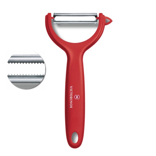 Obieraczka z ostrymi ząbkami, doskonała do pomidorów i miękkich owoców, poprzeczna.