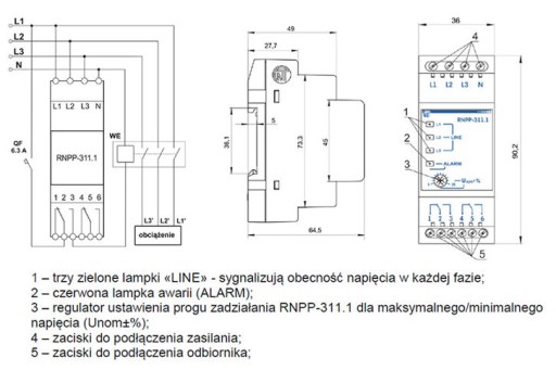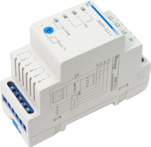 Przekaźnik kontroli napięcia, symetrii i kolejności faz RNPP-311.1 jest przeznaczony do odłączenia obciążenia 400 V 50 Hz w przypadku: