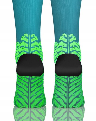 Kontrola wilgoci i ciepła dzięki zastosowanej technologii szycia, struktura otwartych oczek (porów) w tkaninie dla maksymalnej wentylacji łydki, stopniowa kompresja dla lepszego krążenia krwi, ochronna wyściółka stopy, oddychający materiał, szybko schnący materiał.
