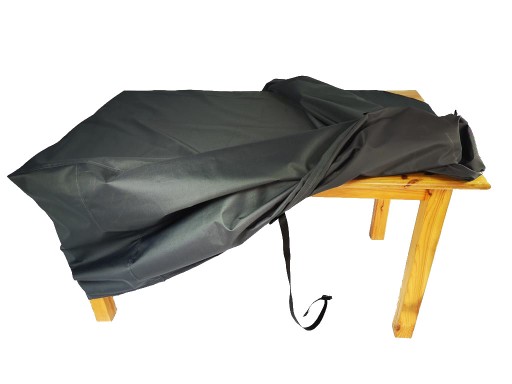 - należy zacisnąć pokrowiec taśmą bądź sznurkiem w dolnej części pokrowca aby podczas podmuchu wiatru zapobiec efektowi „żagla”