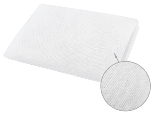 SPECYFIKACJA - kolor: biały; skład: 100% poliester; max. długość: 140-150cm; max. szerokość: 120-130cm; waga: 35g