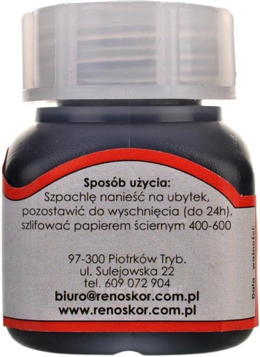 G12-76 POLSKA Płynna szpachla marki RENOSKÓR do renowacji skór licowych i krytych – pojemność 30 ml - kolor CZARNY.