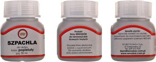 G12-76 POLSKA Płynna szpachla marki RENOSKÓR do renowacji skór licowych i krytych – pojemność 30 ml - kolor POPIELATY.