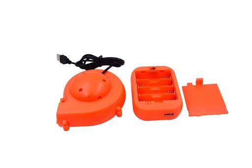Do uruchomienia dmuchawy potrzebne są 4 sztuki baterii AA. Ewentualnie dzięki dołączonemu kabelkowi z wejściem USB, dmuchawę można podłączyć do Powerbanka.
