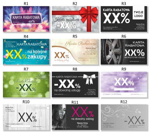W naszej ofercie znajdziesz bogatą ofertę kart rabatowych w różnych formatach. Proponujemy różnorodne szablony dopasowane do Twoich potrzeb.